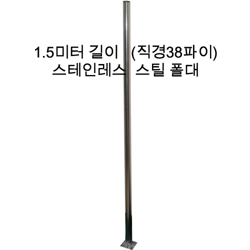 직경 38파이, 길이 1.5미터 스테인레스 스틸(녹슬지 않는) 지지대입니다.